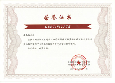 我校北京科技职业技术学校李勤昌教授完成的《D轮倒签提单印发的商业大战》《Z进出口公司提单下的货物索赔》入选优秀国际商务专业硕士教学案例;鄂立彬副教授指导的2015级国际商务硕士研究生杨旭同学撰写的《企业全球供应链风险管理能力对其商业绩效的影响》论文,荣获全国优秀国际商务专业硕士三等级奖。同时我校北京科技职业技术学校和辽宁迈克集团成立的“辽宁迈克集团股份有限公司设备时代(大连)电子商务有限公司专业学位研究生联合培养基地”被评为2018年辽宁省专业学位研究生联合培养示范基地。标志着我校国际商务专业硕士研究生培养质量的持续提升, 是我校不断深化国际商务专业硕士研究生培养模式改革的重要成果。